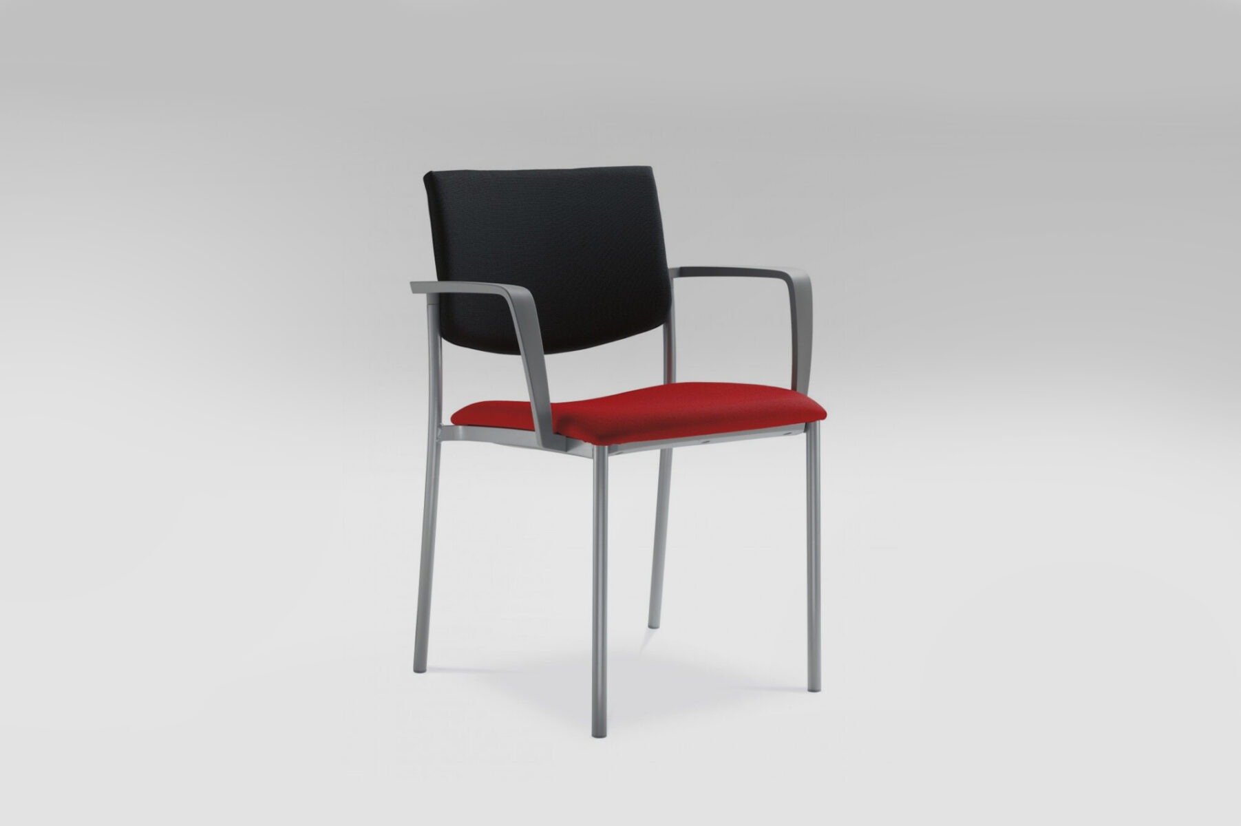 Polsterdatud kangaga ja virnastatav konverentsitool, mida on võimalik saada ka käetugedega.